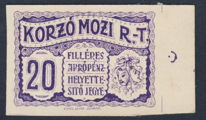 Szeged/Korzó Mozi Rt. DN 20f jobb ívszél + illesztőkereszt T:I https://www.darabanth.com/de/92-Fernauktion/92.0/Numismatik/~294/SzegedKorzo-Mozi-Rt-DN-20f-jobb-ivszel-plus-illesztokereszt-TI~II207616