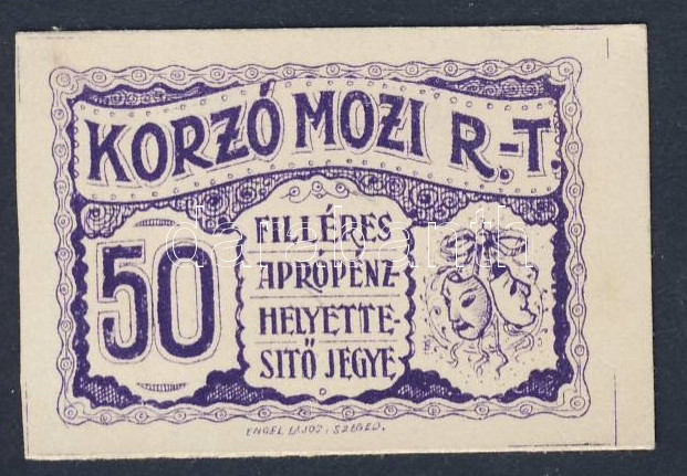 Szeged/Korzó Mozi Rt. DN 50f jobb ívszél + illesztőkereszt T:I https://www.darabanth.com/de/92-Fernauktion/92.0/Numismatik/~294/SzegedKorzo-Mozi-Rt-DN-50f-jobb-ivszel-plus-illesztokereszt-TI~II207617