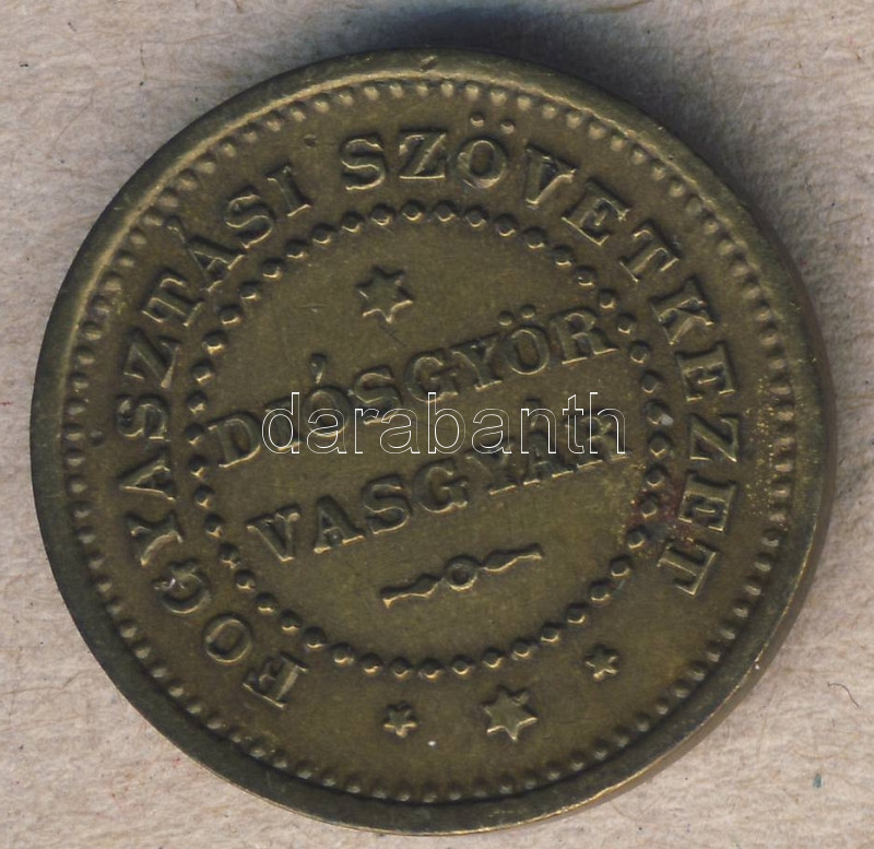 cca 1910. "Fogyasztási Szövetkezet-Diósgyőri Vasgyár-1 vendéglő" vendé... https://www.darabanth.com/de/92-Fernauktion/92.0/Numismatik/~294/cca-1910-Fogyasztasi-Szovetkezet-Diosgyori-Vasgyar-1-vendeglo-vendegloi-barca-T23~II205437