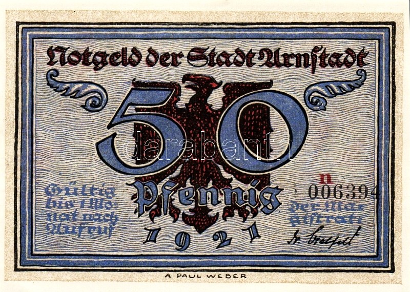 Német Birodalom/Weimari Köztársaság/ Arnstadt 1921. 50Pf(6x) 6klf db, ... https://www.darabanth.com/de/92-Fernauktion/92.0/Numismatik/~295/Nemet-BirodalomWeimari-Koztarsasag-Arnstadt-1921-50Pf6x-6klf-db-teljes-sor-TI~II206349