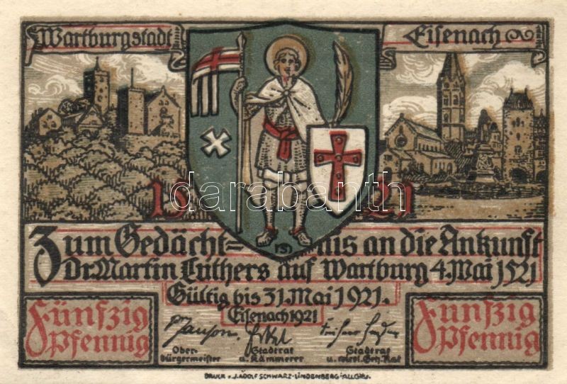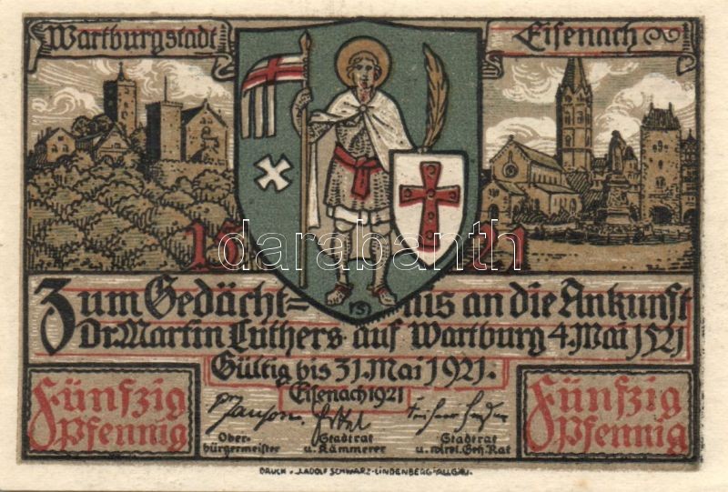 Német Birodalom/Weimari Köztársaság Eisenach 1921. 50Pf (6x) 6klf, tel... https://www.darabanth.com/de/92-Fernauktion/92.0/Numismatik/~295/Nemet-BirodalomWeimari-Koztarsasag-Eisenach-1921-50Pf-6x-6klf-teljes-sor-TI~II204603