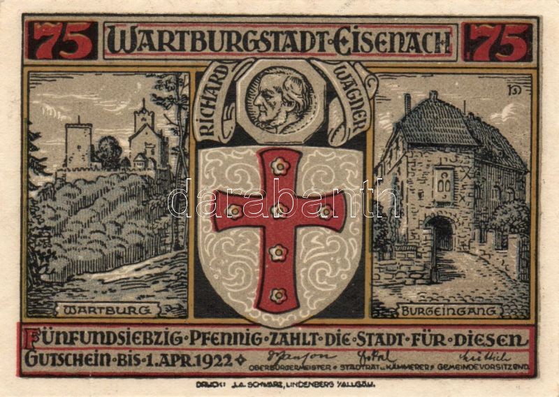 Német Birodalom/Weimari Köztársaság Eisenach 1922. 25Pf (2x)+ 50Pf (2x... https://www.darabanth.com/de/92-Fernauktion/92.0/Numismatik/~295/Nemet-BirodalomWeimari-Koztarsasag-Eisenach-1922-25Pf-2xplus-50Pf-2x-plus-75Pf-2x-6klf-teljes-~II205371
