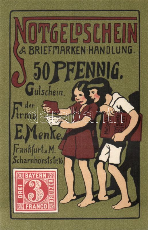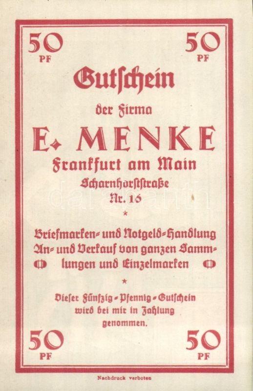 Beschreibung: Német Birodalom/Weimari Köztársaság/ Frankfurt a.M./Firma E. Menke D.N. dekoratív privát szükségpénz egy szükségpénz- és bélyegkereskedőtől T:I R!