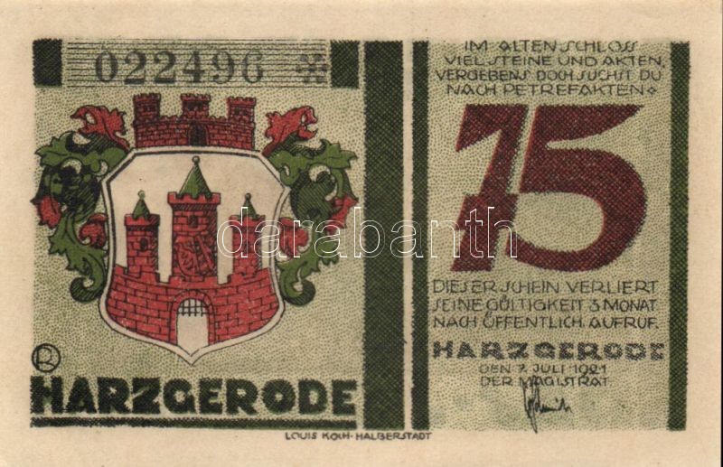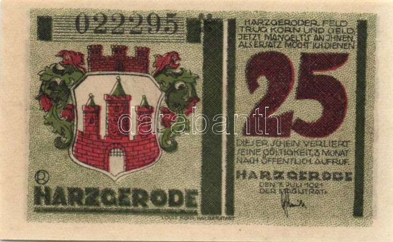 Német Birodalom/Weimari Köztársaság Harzgerode 1921. 25Pf + 50Pf + 75P... https://www.darabanth.com/de/92-Fernauktion/92.0/Numismatik/~295/Nemet-BirodalomWeimari-Koztarsasag-Harzgerode-1921-25Pf-plus-50Pf-plus-75Pf-3klf-teljes-sor-TI~II204604