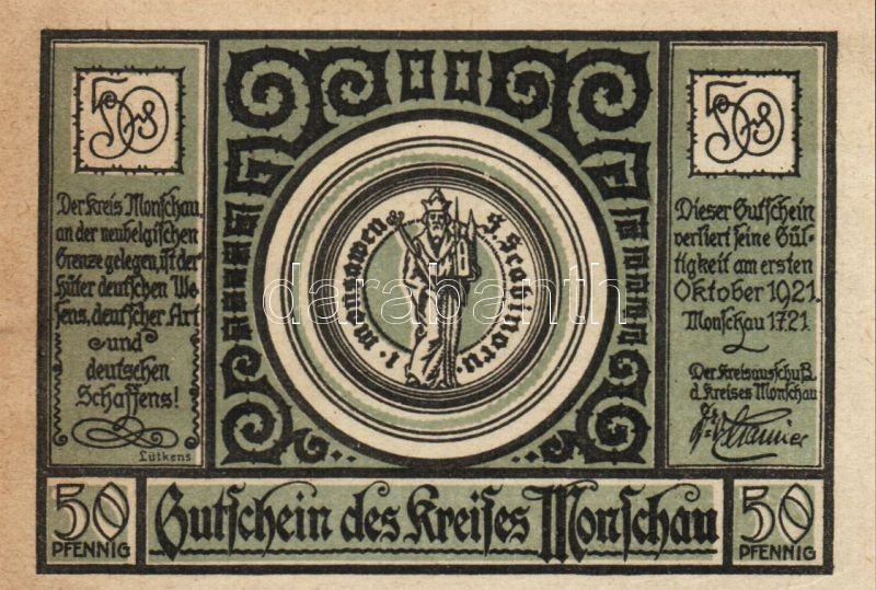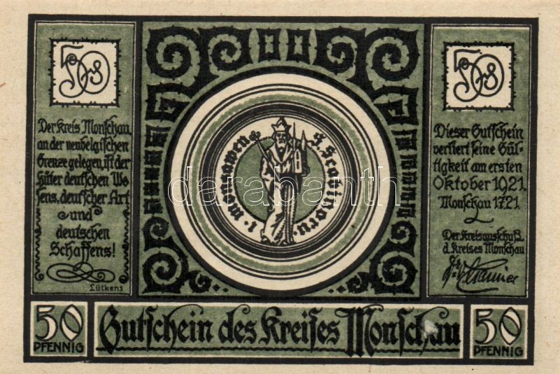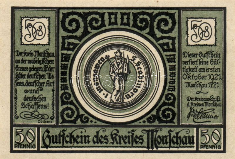Német Birodalom/Weimari Köztársaság/ Monschau 1921. 50Pf(3x)3klf, telj... https://www.darabanth.com/de/92-Fernauktion/92.0/Numismatik/~295/Nemet-BirodalomWeimari-Koztarsasag-Monschau-1921-50Pf3x3klf-teljes-sor-TI~II206328