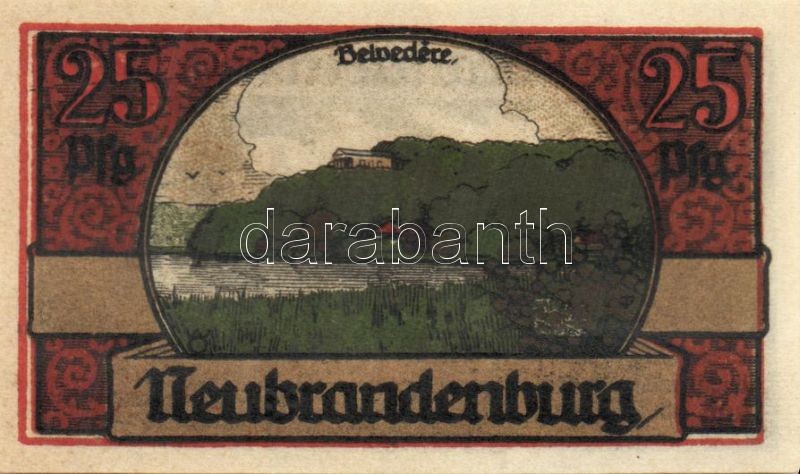 Beschreibung: Német Birodalom/Weimari Köztársaság/ Neubrandenburg 1921. 25Pf(3x) + 50Pf(3x) + 75Pf(3x) összesen: 9klf db, teljes sor T:I
