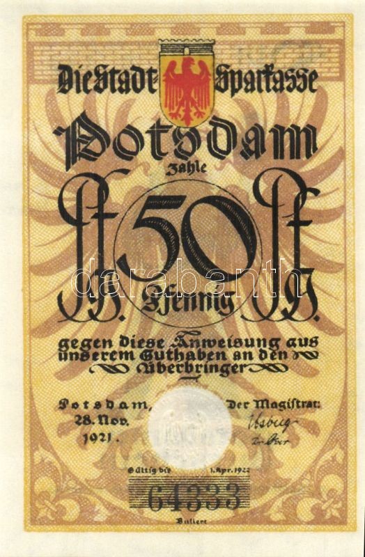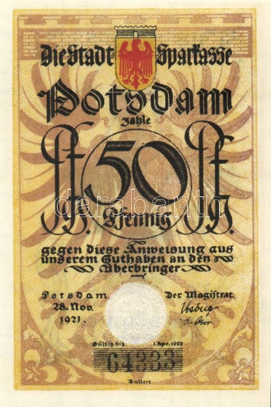 Német Birodalom/Weimari Köztársaság/ Potsdam 1921. 50Pf(6x) 6klf, telj... https://www.darabanth.com/de/92-Fernauktion/92.0/Numismatik/~295/Nemet-BirodalomWeimari-Koztarsasag-Potsdam-1921-50Pf6x-6klf-teljes-sor-TI~II206320