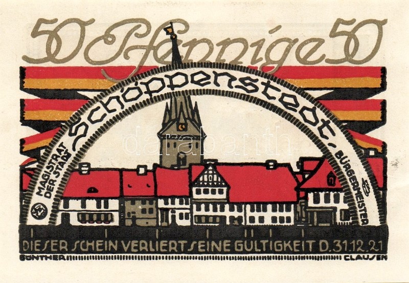 Német Birodalom/Weimari Köztársaság/ Schöppenstedt 1921. 50Pf(10x) 10k... https://www.darabanth.com/de/92-Fernauktion/92.0/Numismatik/~295/Nemet-BirodalomWeimari-Koztarsasag-Schoppenstedt-1921-50Pf10x-10klf-db-teljes-sor-TI~II206352