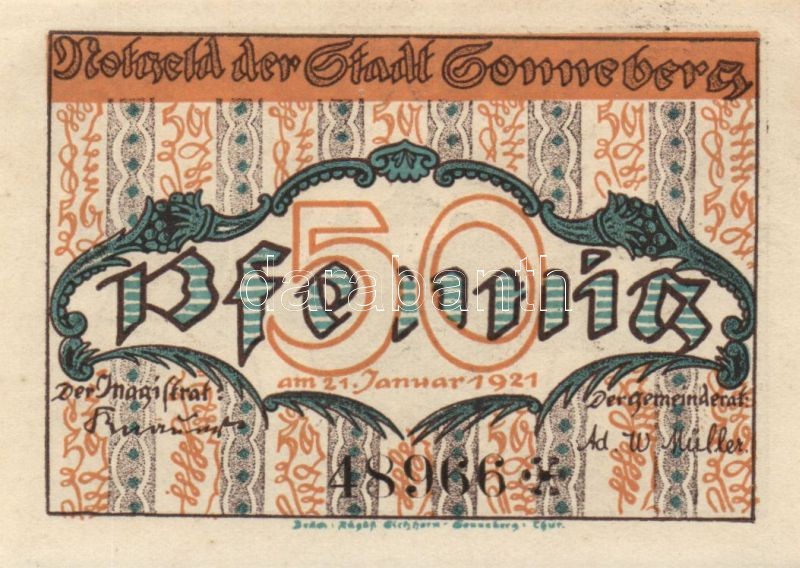 Német Birodalom/Weimari Köztársaság Sonneberg 1921. 10 Pf + 25 Pf + 50... https://www.darabanth.com/de/92-Fernauktion/92.0/Numismatik/~295/Nemet-BirodalomWeimari-Koztarsasag-Sonneberg-1921-10-Pf-plus-25-Pf-plus-50-Pf--3-klf-teljes-sor-TI~II205381