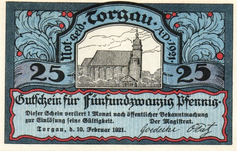 Beschreibung: Német Birodalom/Weimari Köztársaság/ Torgau 1921. 5Pf + 10Pf + 25Pf + 50Pf 4klf db, teljes sor T:I