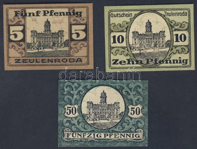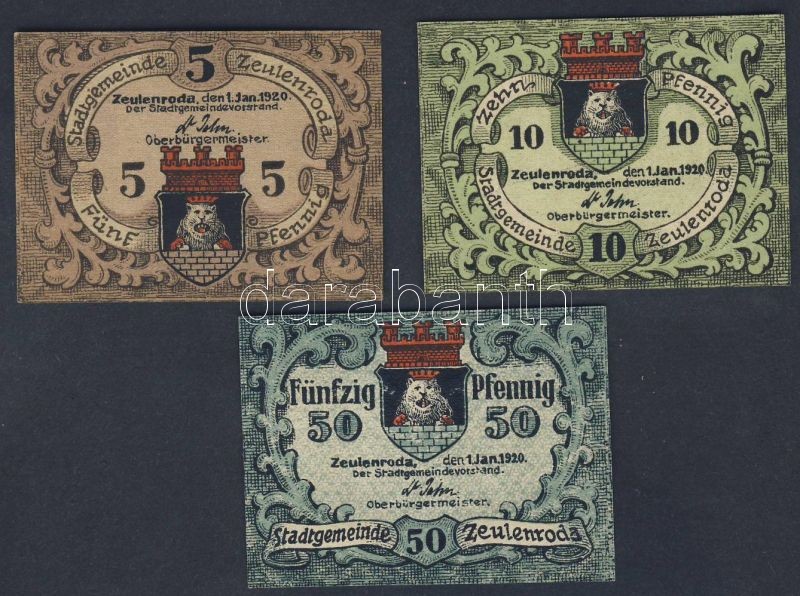 Beschreibung: Német Birodalom/Weimari Köztársaság Zeulenroda 1920. 5Pf + 10Pf + 50Pf 3klf, teljes sor T:I