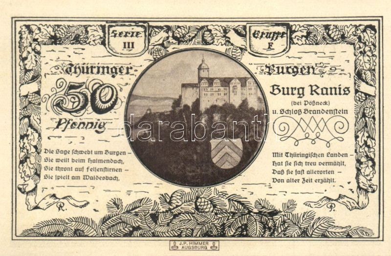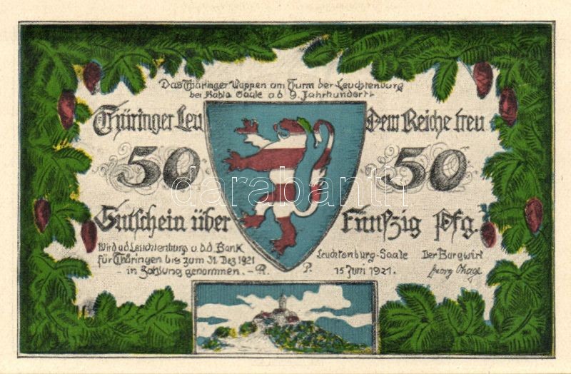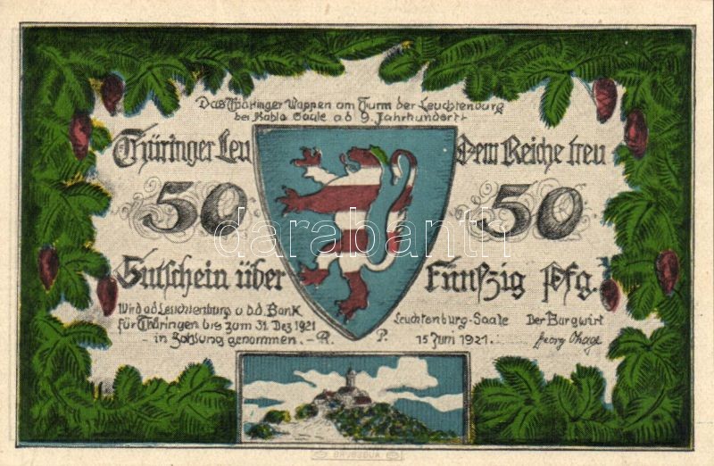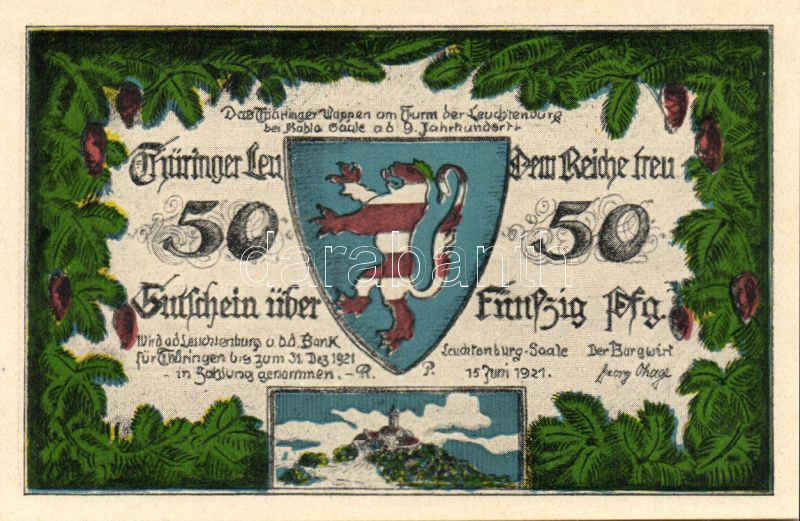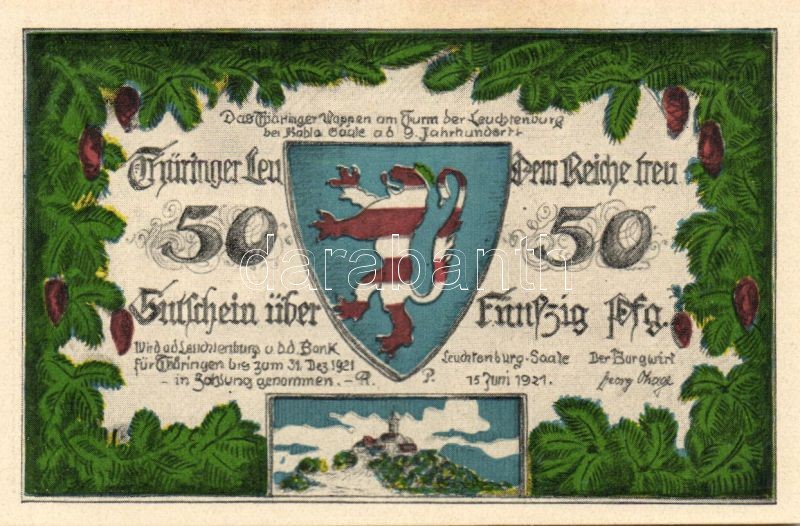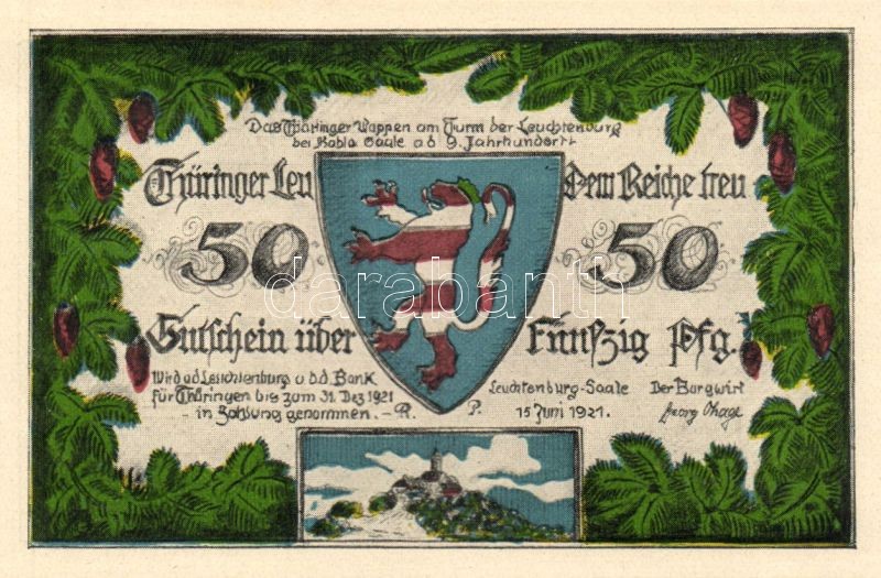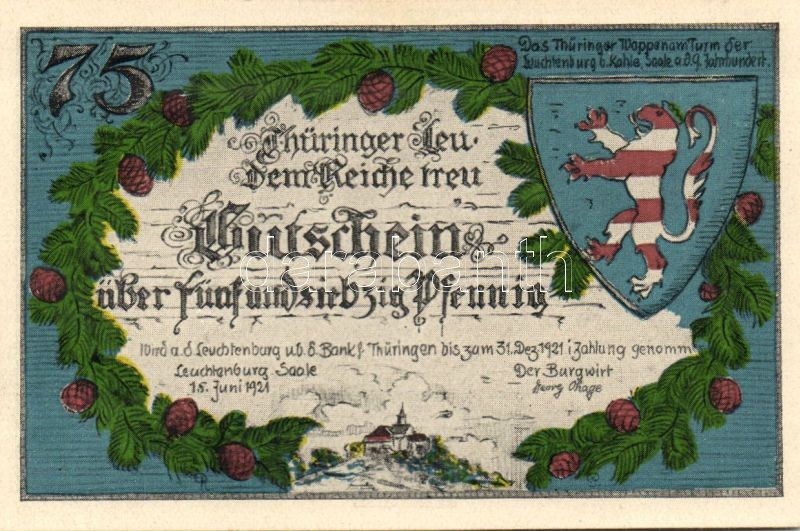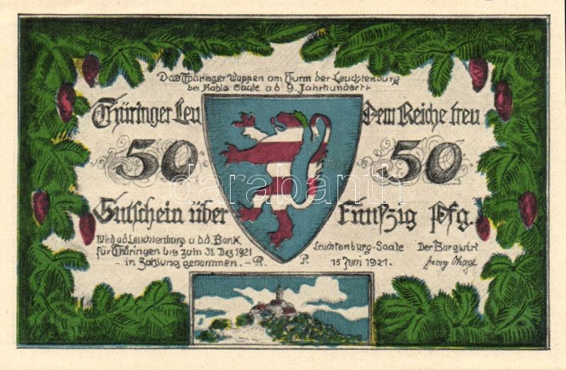 Német Birodalom/Weimari Köztársaság/Kahla Leuchtenburg 1921. 50Pf (6x ... https://www.darabanth.com/de/92-Fernauktion/92.0/Numismatik/~295/Nemet-BirodalomWeimari-KoztarsasagKahla-Leuchtenburg-1921-50Pf-6x-klf-75Pf-6x-klf-telje~II206717