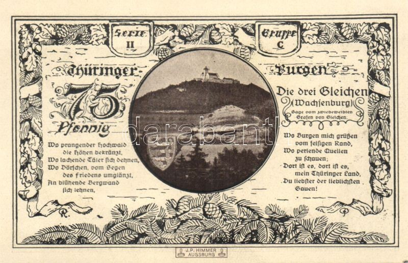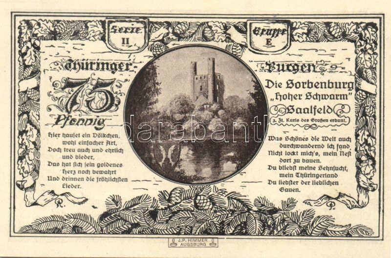 Beschreibung: Német Birodalom/Weimari Köztársaság/Kahla Leuchtenburg 1921. 50Pf (6x klf), 75Pf (6x klf), teljes sor! T:I Összesen 12klf db!