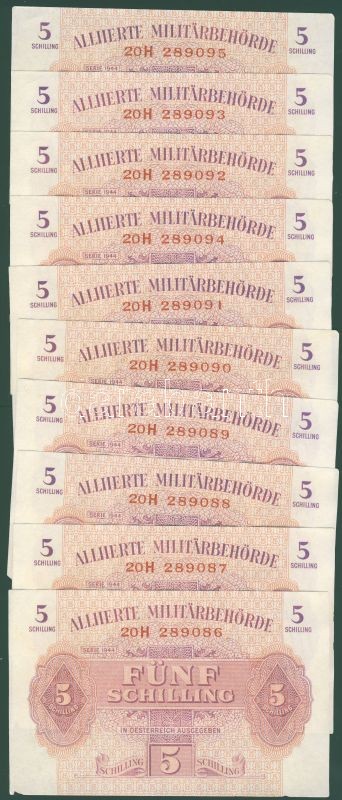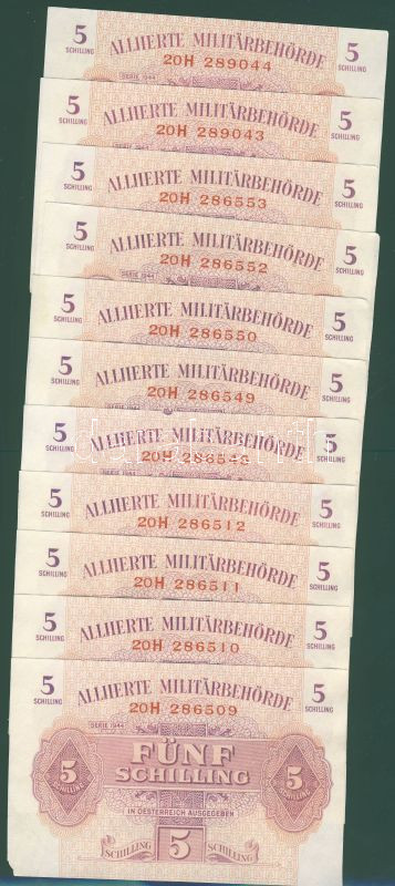 Ausztria/nemzetközi megszállás 1944. 5Sch (32x) egy-két kivétellel egy... https://www.darabanth.com/de/92-Fernauktion/92.0/Numismatik/~296/Ausztrianemzetkozi-megszallas-1944-5Sch-32x-egy-ket-kivetellel-egymasutani-sorszamokkal-~II205606