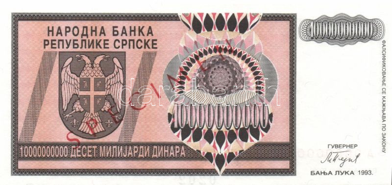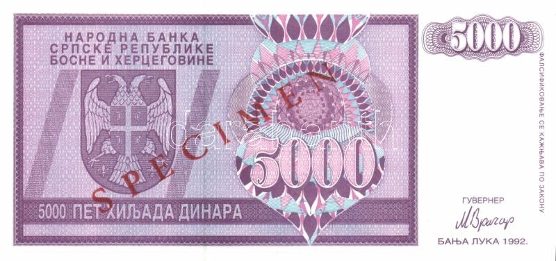 Bosznia Hercegovina/Szerb Köztársaság 1992. 5000D "SPECIMEN-0000" (Min... https://www.darabanth.com/de/92-Fernauktion/92.0/Numismatik/~296/Bosznia-HercegovinaSzerb-Koztarsasag-1992-5000D-SPECIMEN-0000-Minta-plus-1993-10000000000D~II207021