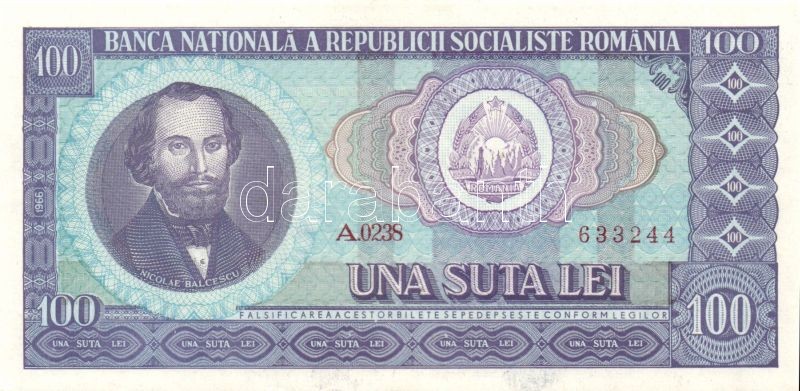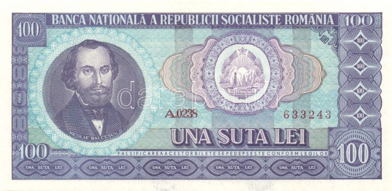Románia 1966. 100L (2x) egymásutáni sorszámokkal T:I https://www.darabanth.com/de/92-Fernauktion/92.0/Numismatik/~296/Romania-1966-100L-2x-egymasutani-sorszamokkal-TI~II207015