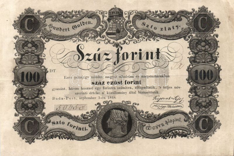 1848. 100Ft "Kossuth bankó" T:szépen restaurált https://www.darabanth.com/de/92-Fernauktion/92.0/Numismatik/~297/1848-100Ft-Kossuth-banko-Tszepen-restauralt~II206298