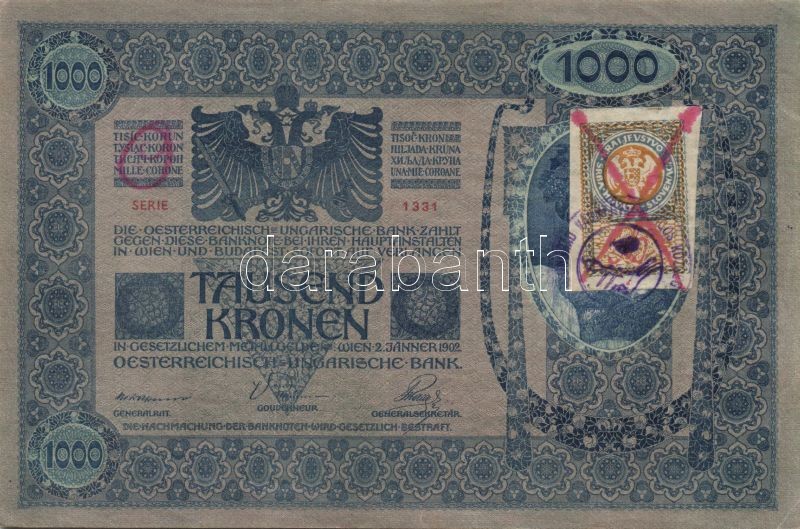 1902. 1000K szerb ellenbélyeggel és mindkét oldalon"Csongrád Vármegye.... https://www.darabanth.com/de/92-Fernauktion/92.0/Numismatik/~297/1902-1000K-szerb-ellenbelyeggel-es-mindket-oldalonCsongrad-Varmegye-ellenbelyegzovel-T~II207077