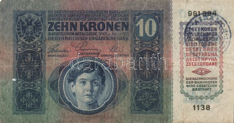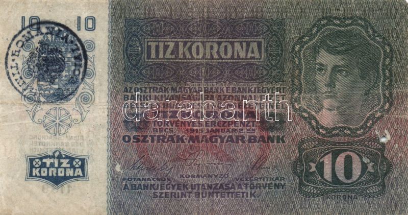 Beschreibung: 1912. 100K cseh ellenbélyeggel + 1914. 50K szerb ellenbélyegzővel + 1915. 10K (2x) román ellenbélyegzővel T:II/III,III