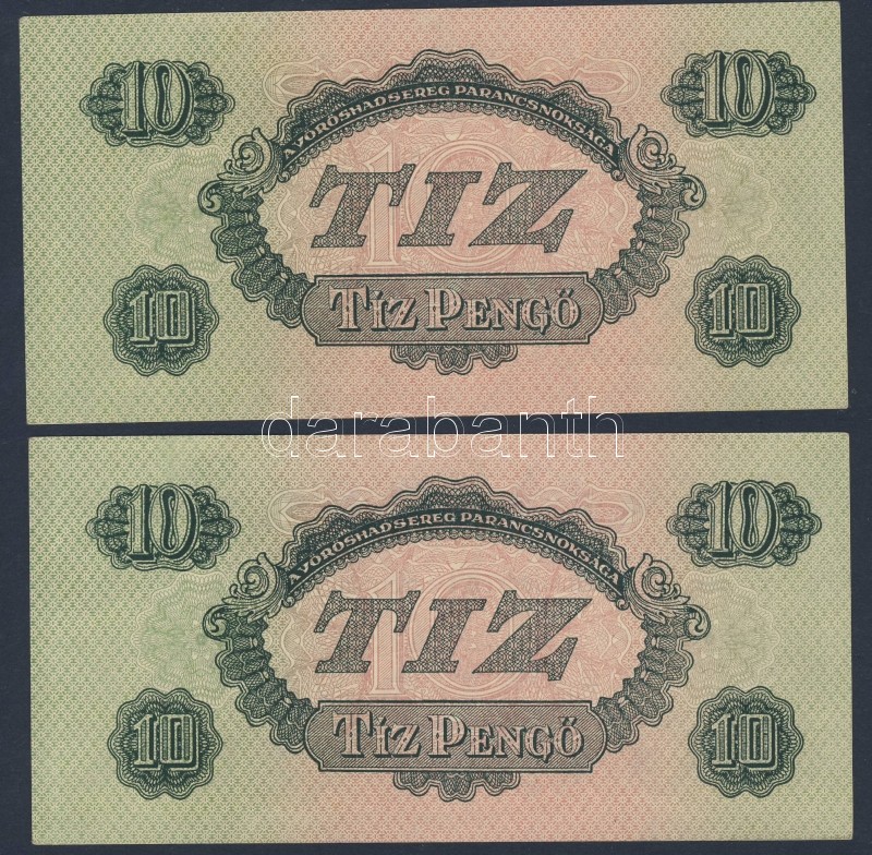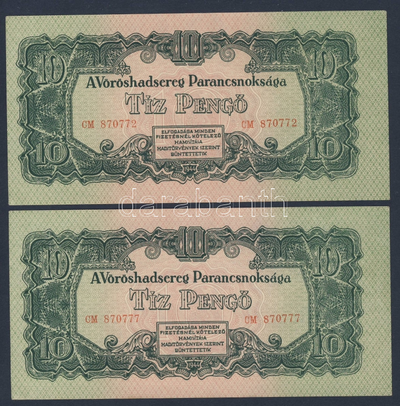 1944. 10P "V.H." (2x) kevés ugrású számokkal T:I https://www.darabanth.com/de/92-Fernauktion/92.0/Numismatik/~297/1944-10P-VH-2x-keves-ugrasu-szamokkal-TI~II207431