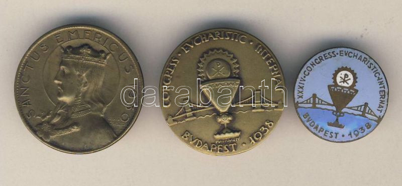 Beschreibung: 1930. "Szent Imre" Br kitűző T:2 + 1938. "Eucharisztikus kongresszus" 2klf db Br kitűző, az egyik zománcozott T:2