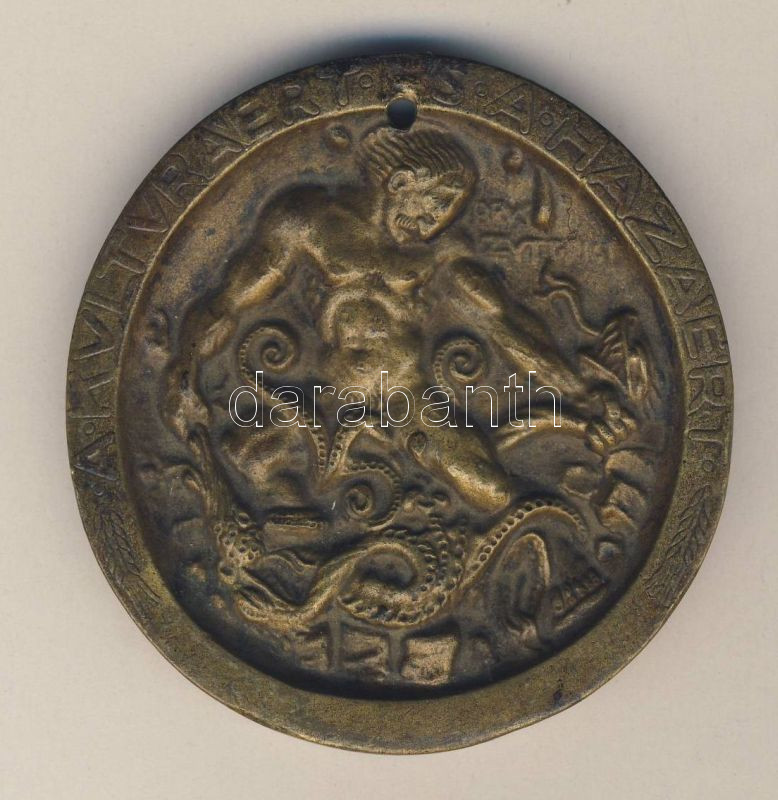 Beschreibung: cca. 1916. "Kéve-A kultúráért és a hazáért" extrém nagyalakú Br plakett Szign:Zutt T:2 felül átlyukasztva! R!