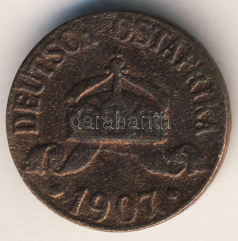 Német Birodalom/Császárság/Német Kelet-Afrika 1907. 1H T:3/3- korr. https://www.darabanth.com/de/92-Fernauktion/92.0/Numismatik/~304/Nemet-BirodalomCsaszarsagNemet-Kelet-Afrika-1907-1H-T33-korr~II206639