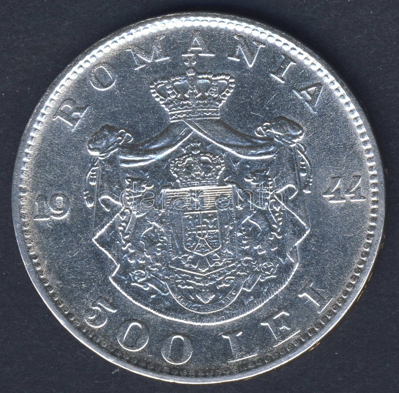 Románia 1944. 500L Ag T:2/3 https://www.darabanth.com/de/92-Fernauktion/92.0/Numismatik/~304/Romania-1944-500L-Ag-T23~II205521
