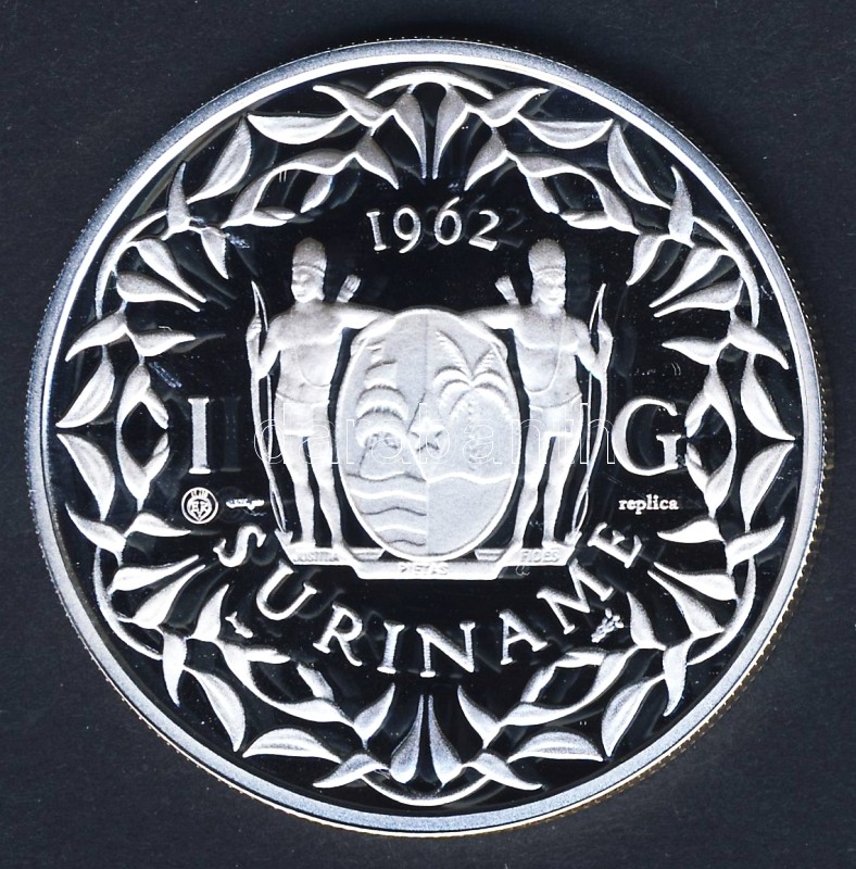 Suriname 1962. 1G Ag nagyalakú utánverete 31,26g T:PP https://www.darabanth.com/de/92-Fernauktion/92.0/Numismatik/~304/Suriname-1962-1G-Ag-nagyalaku-utanverete-31-26g-TPP~II205677