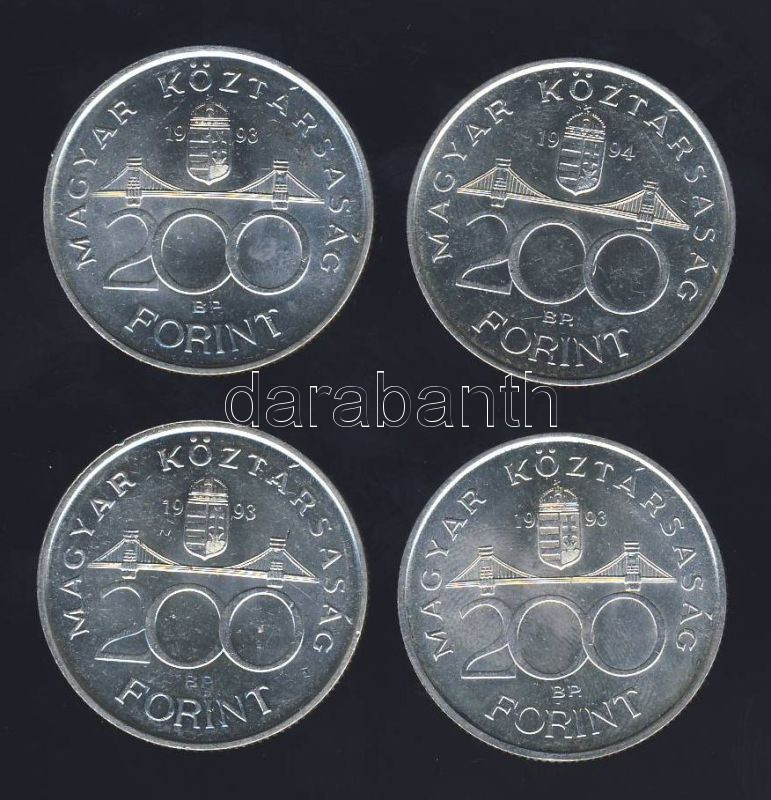 1993-94. 200Ft Ag "MNB" (3x), "Deák" (1x) T:BU,2 https://www.darabanth.com/de/92-Fernauktion/92.0/Numismatik/~305/1993-94-200Ft-Ag-MNB-3x-Deak-1x-TBU-2~II206469