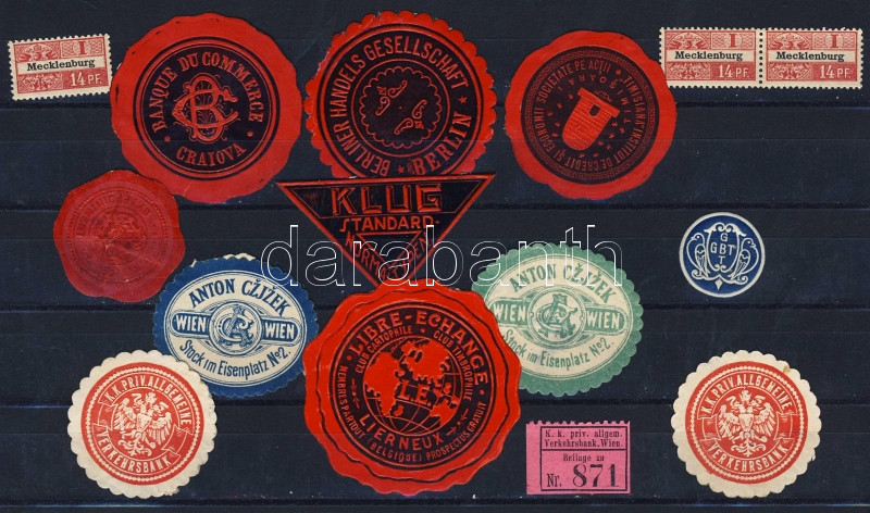 Beschreibung: 1910-1914 15db levélzáró és pecsétbélyeg, külföldi