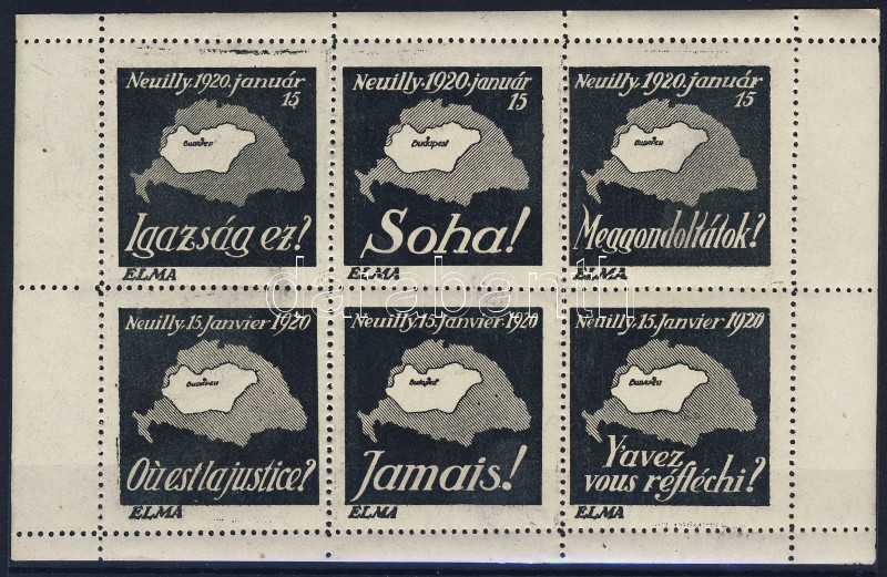 Beschreibung: 1920 ELMA irredenta levélzáró kisív