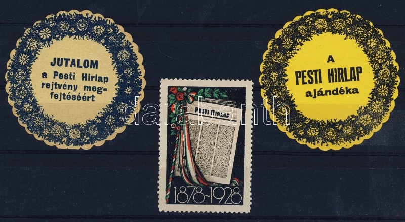 1928 3db Pesti Hírlap levélzáró https://www.darabanth.com/de/93-Fernauktion/93.0/Andere-Sammelgebiete/~5293/1928-3db-Pesti-Hirlap-levelzaro~II207404