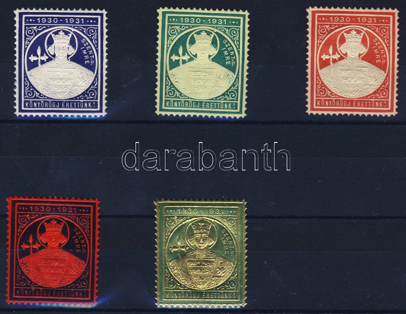 Beschreibung: 1930 5db klf Szent Imre dombornyomású levélzáró