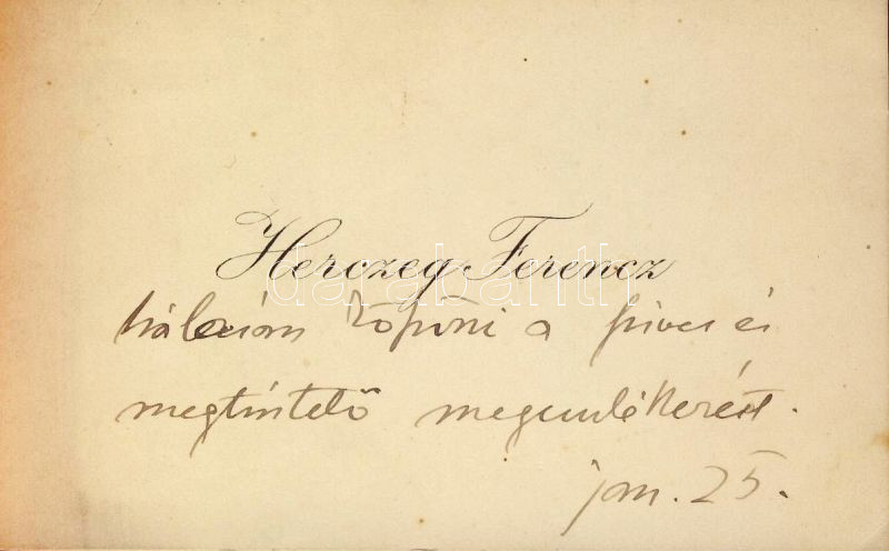 Herczeg Ferenc író saját keézzel írt köszönő sorai névjegykártyáján https://www.darabanth.com/de/93-Fernauktion/93.0/Andere-Sammelgebiete/~5298/Herczeg-Ferenc-iro-sajat-keezzel-irt-koszono-sorai-nevjegykartyajan~II212881