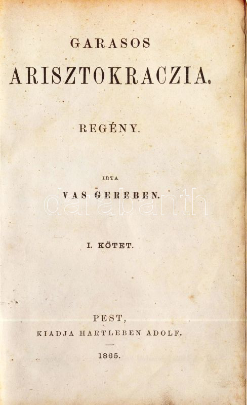 1865 Vas Gereben: Garasos arisztokráczia I.-II. kötet későbbi kötéssel... https://www.darabanth.com/de/93-Fernauktion/93.0/Andere-Sammelgebiete/~5306/1865-Vas-Gereben-Garasos-arisztokraczia-I-II-kotet-kesobbi-kotessel-egybekotve-I-kiadas~II212443