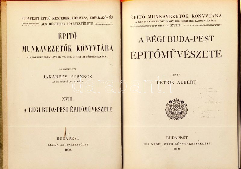 1909 Petrik Albert: A régi Buda-Pest építőművészete (Építő munkavazető... https://www.darabanth.com/de/93-Fernauktion/93.0/Andere-Sammelgebiete/~5306/1909-Petrik-Albert-A-regi-Buda-Pest-epitomuveszete-Epito-munkavazetok-konyvtara~II212426