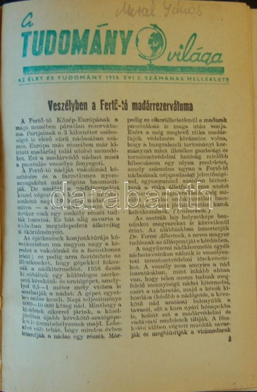 1958 A Tudomány Világa (az Élet és Tudomány melléklete) évfolyama bekö... https://www.darabanth.com/de/93-Fernauktion/93.0/Andere-Sammelgebiete/~5306/1958-A-Tudomany-Vilaga-az-Elet-es-Tudomany-melleklete-evfolyama-bekotve~II206425