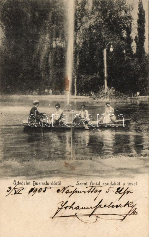 Buziásfürdő, Szent Antal csodakút a tóval https://www.darabanth.com/de/93-Fernauktion/93.0/Ansichtskarten/~5209/Buziasfurdo-Szent-Antal-csodakut-a-toval~II210812