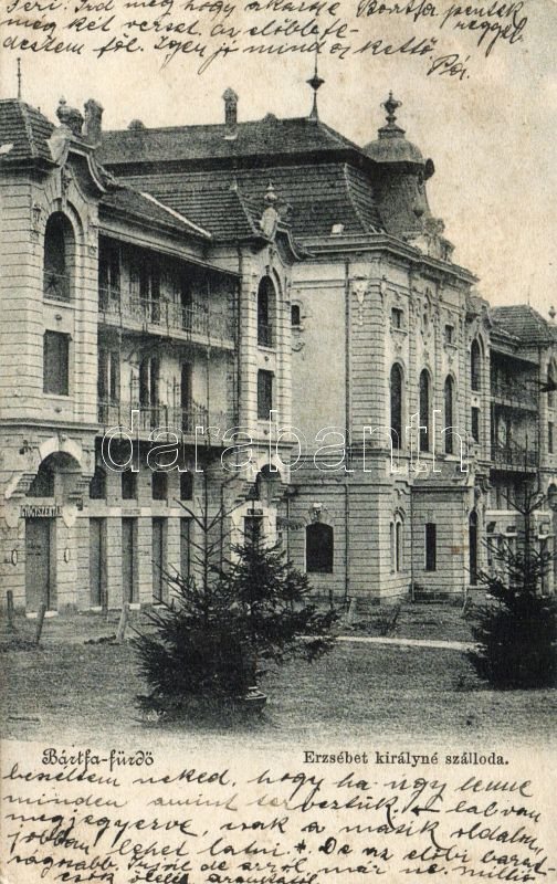 Beschreibung: Bártfafürdő Erzsébet királynő és szálló (álló)