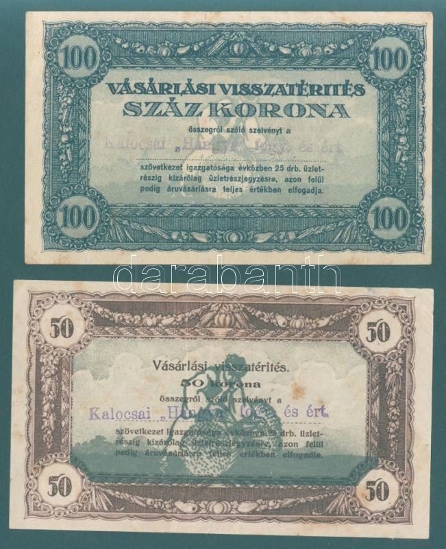1920-as évek eleje 50K + 100K vásárlási visszatérítés lila "Kalocsai H... https://www.darabanth.com/de/93-Fernauktion/93.0/Numismatik/~5313/1920-as-evek-eleje-50K-plus-100K-vasarlasi-visszaterites-lila-Kalocsai-Hangya-fogy-es-ert-~II214375