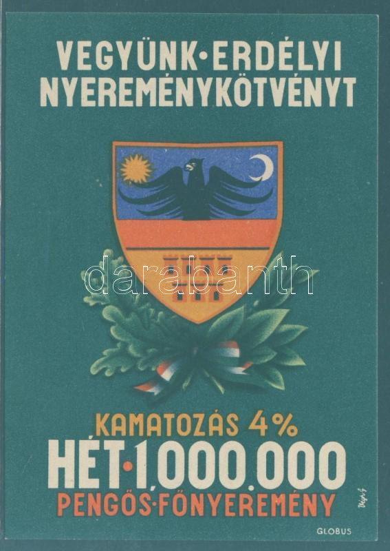 1940-es évek eleje "VEGYÜNK ERDÉLYI NYEREMÉNYKÖTVÉNYT" dekoratív, prop... https://www.darabanth.com/de/93-Fernauktion/93.0/Numismatik/~5313/1940-es-evek-eleje-VEGYUNK-ERDELYI-NYEREMENYKOTVENYT-dekorativ-propaganda-szorolap~II213038