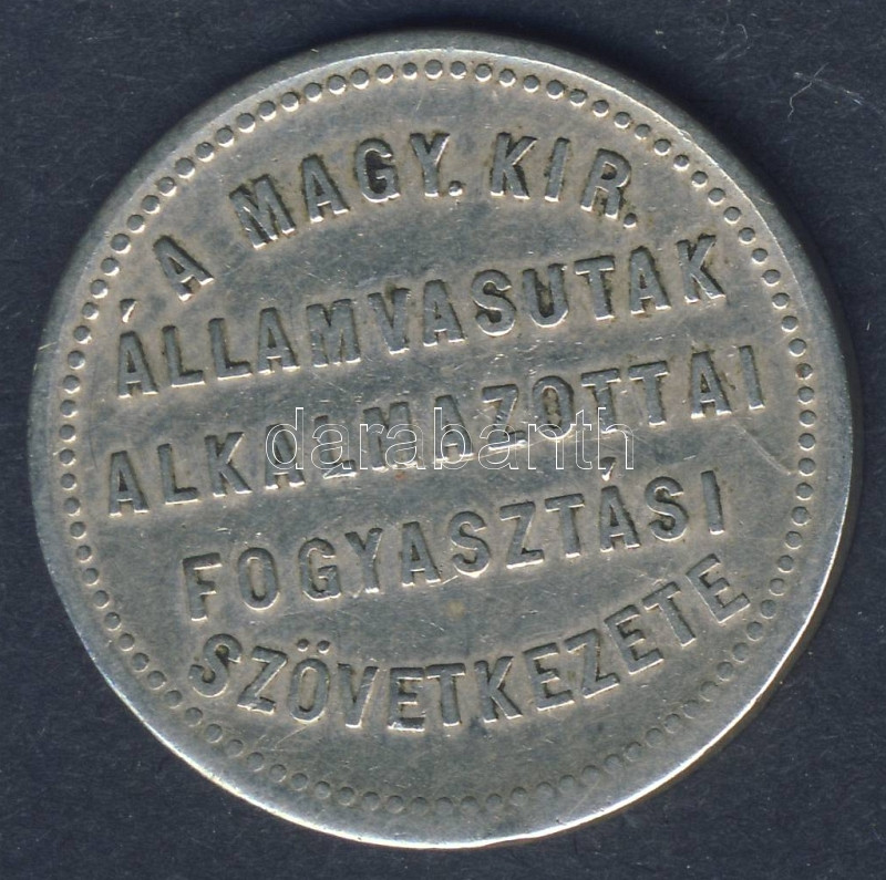 cca Századforduló "Magy. Kir. Államvasutak alkalmazottai Fogyasztási S... https://www.darabanth.com/de/93-Fernauktion/93.0/Numismatik/~5314/cca-Szazadfordulo-Magy-Kir-Allamvasutak-alkalmazottai-Fogyasztasi-Szovetkezet-10-barca-T2~II205443