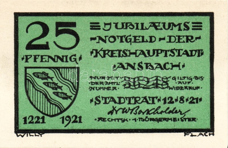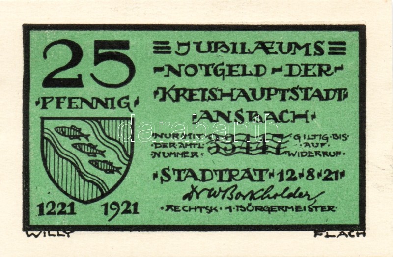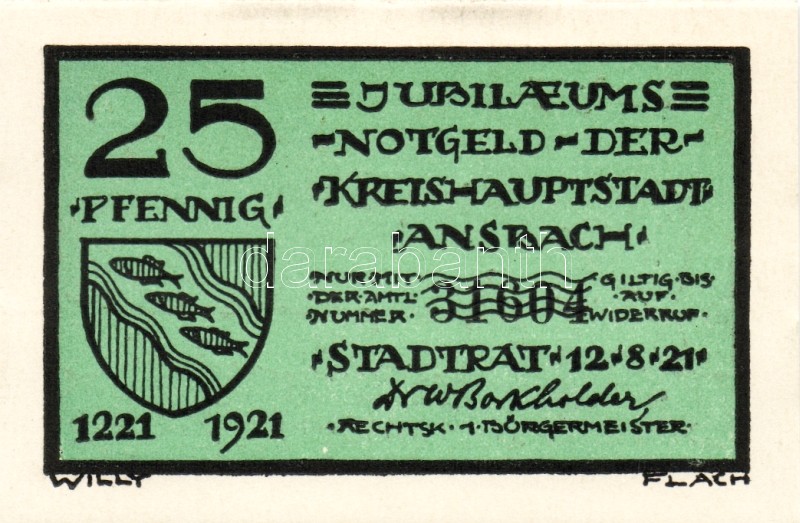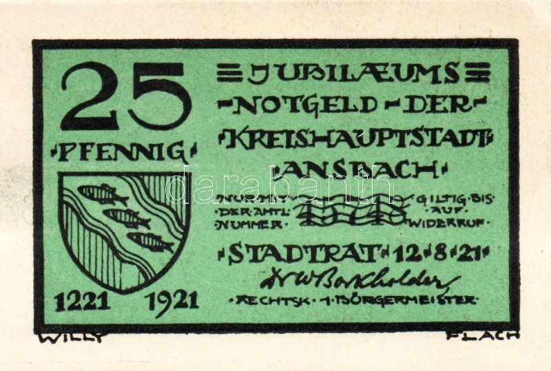 Beschreibung: Német Birodalom/Weimari Köztársaság/ Ansbach 1921. 25Pf(7x) + 75Pf(7x) összesen 14klf db, teljes sor T:I