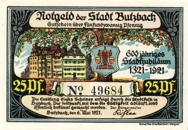 Német Birodalom/Weimari Köztársaság/ Butzbach 1921. 25Pf + 50Pf(7x) ös... https://www.darabanth.com/de/93-Fernauktion/93.0/Numismatik/~5315/Nemet-BirodalomWeimari-Koztarsasag-Butzbach-1921-25Pf-plus-50Pf7x-osszesen-8klf-db-teljes-so~II213011