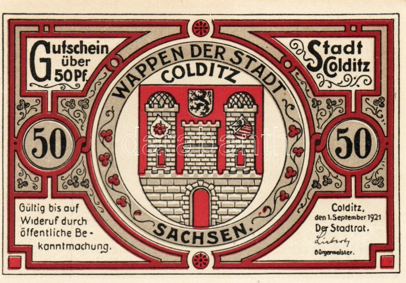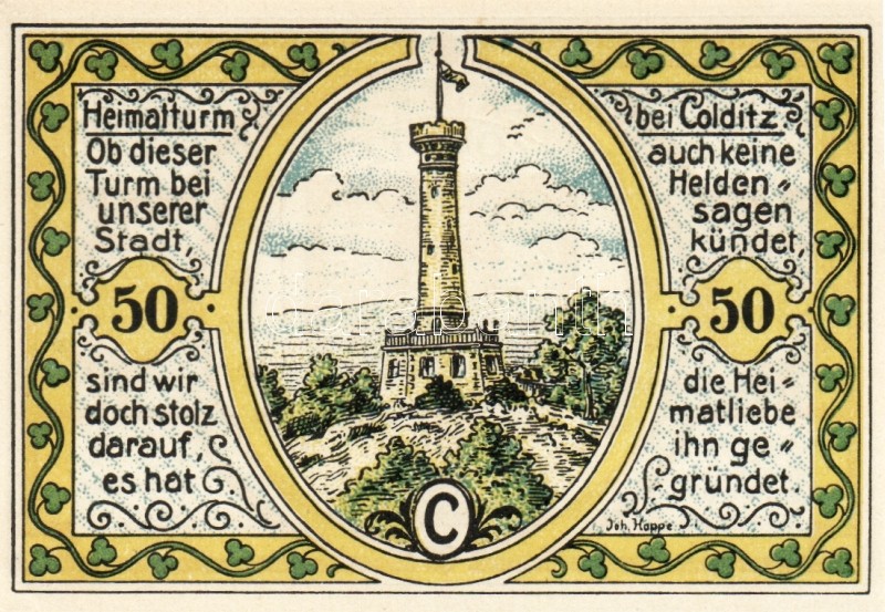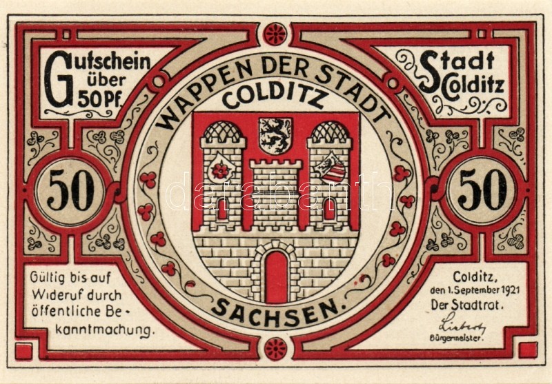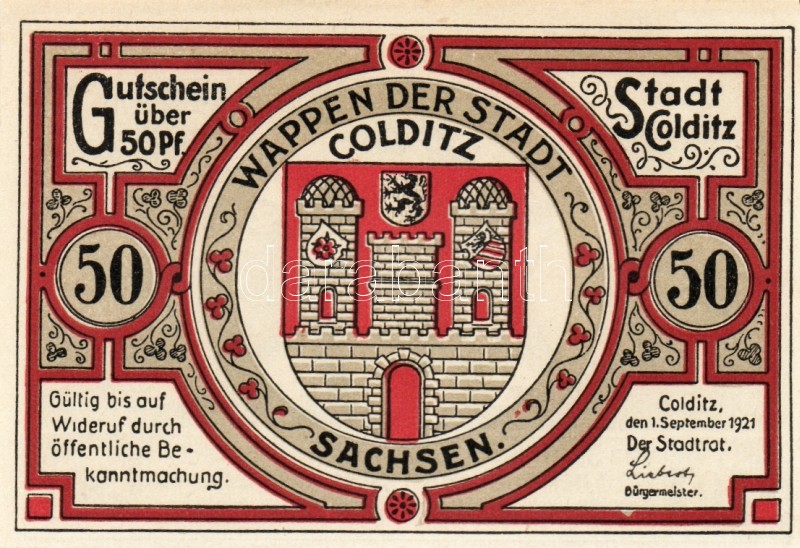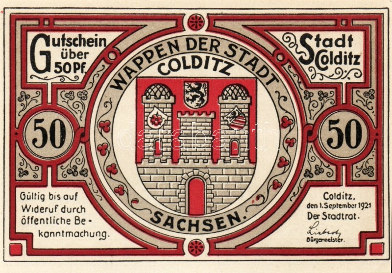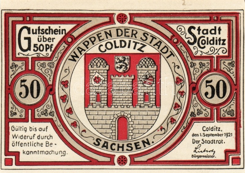 Német Birodalom/Weimari Köztársaság/ Colditz 1921. 50Pf(6x) 6klf db, t... https://www.darabanth.com/de/93-Fernauktion/93.0/Numismatik/~5315/Nemet-BirodalomWeimari-Koztarsasag-Colditz-1921-50Pf6x-6klf-db-teljes-sor-TI~II212993