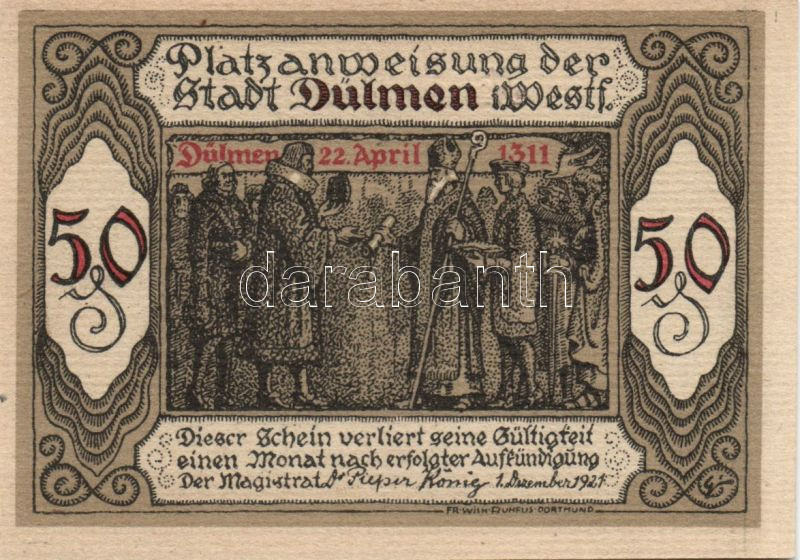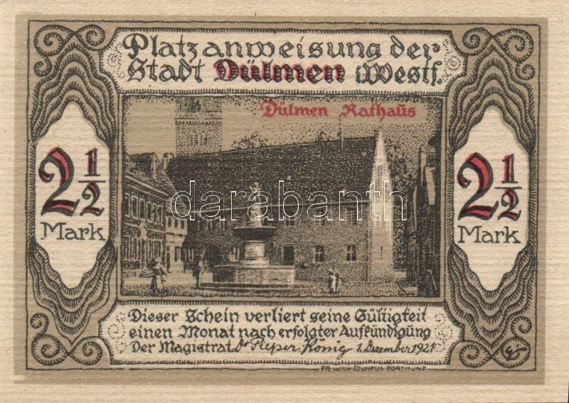 Német Birodalom/Weimari Köztársaság/ Dülmen 1921. 50Pf + 75Pf + 1M + 1... https://www.darabanth.com/de/93-Fernauktion/93.0/Numismatik/~5315/Nemet-BirodalomWeimari-Koztarsasag-Dulmen-1921-50Pf-plus-75Pf-plus-1M-plus-1-5M-plus-2M-plus-2-5M-osszesen~II209477