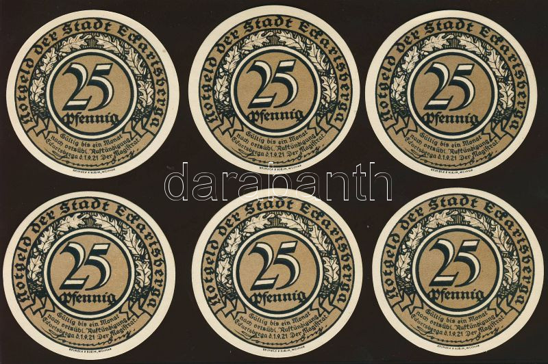 Német Birodalom/Weimari Köztársaság/ Eckartsberga 1921. 25Pf(6x) 6klf ... https://www.darabanth.com/de/93-Fernauktion/93.0/Numismatik/~5315/Nemet-BirodalomWeimari-Koztarsasag-Eckartsberga-1921-25Pf6x-6klf-db-teljes-sor-TI~II211082