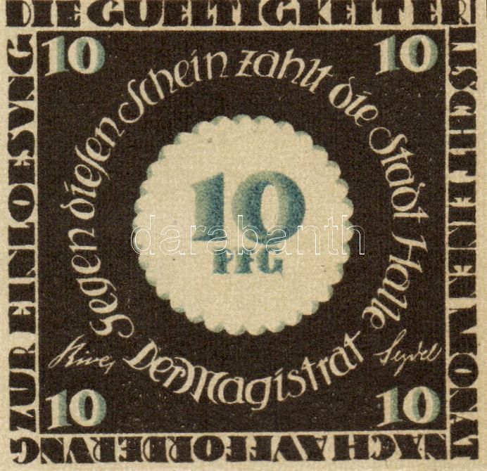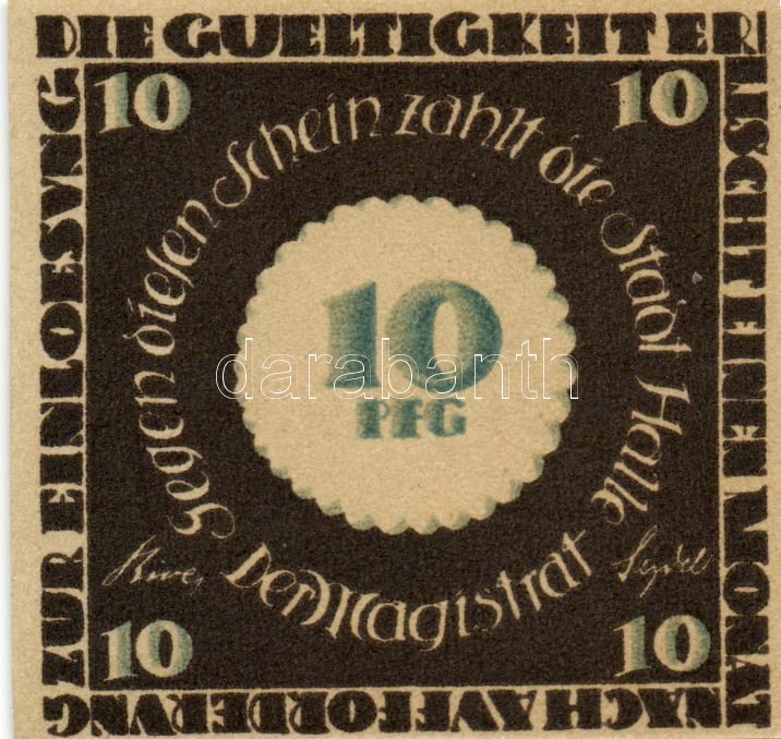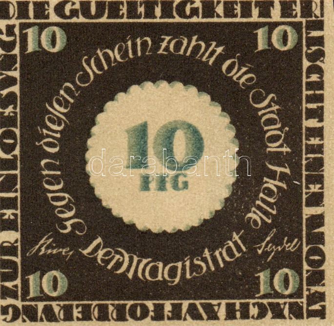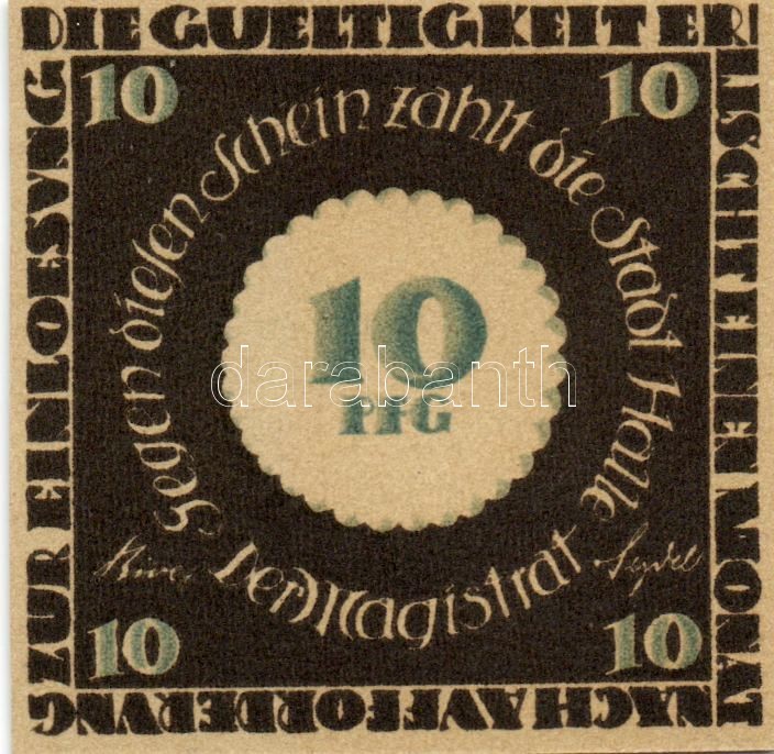 Beschreibung: Német Birodalom/Weimari Köztársaság/ Halle 1921. 10Pf(5x) + 20Pf(5x) összesen 10klf db, teljes sor T:I