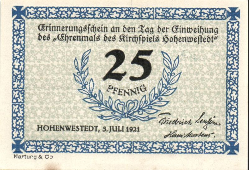 Német Birodalom/Weimari Köztársaság/ Hohenwestedt 1921. 25Pf + 50Pf + ... https://www.darabanth.com/de/93-Fernauktion/93.0/Numismatik/~5315/Nemet-BirodalomWeimari-Koztarsasag-Hohenwestedt-1921-25Pf-plus-50Pf-plus-1M-3klf-db-teljes-sor-TI~II209455